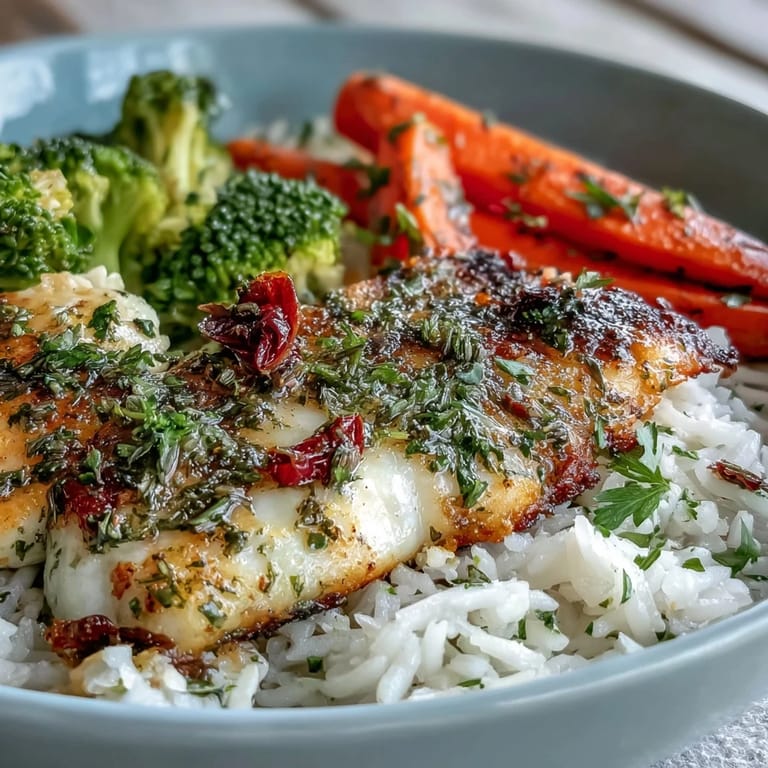 There's a quiet sophistication to how the lemon brightness plays against the herbaceous earthiness and the rice's gentle nuttiness. The steamed vegetables add sweetness and texture without competing for attention, which means every spoonful feels complete. I've learned that good cooking isn't always about complexity—sometimes it's about letting simple ingredients speak clearly.