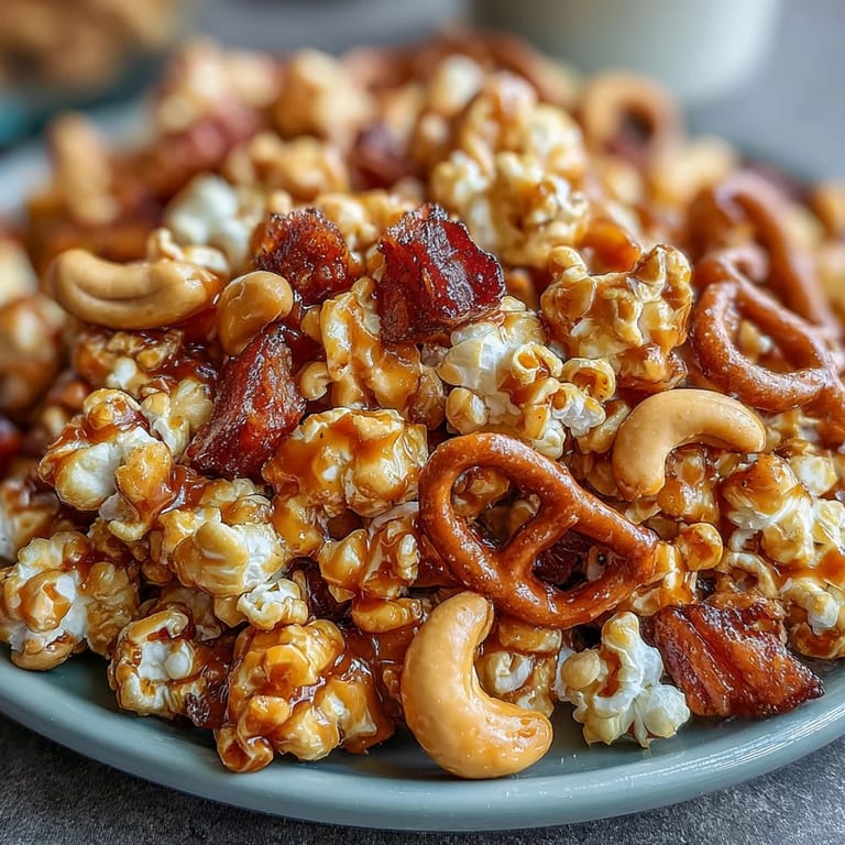 Save to Pinterest My neighbor showed up with a bag of this at a block party last summer, and I couldn't stop eating it straight from the container while standing by the grill. The way the caramel clung to every piece of popcorn, how the dried apples added this subtle tartness against the sweetness—it felt like someone had figured out the exact snack my hands had been reaching for all along. She wouldn't give up the recipe that day, just smiled and said she'd teach me sometime. Well, here we are.
