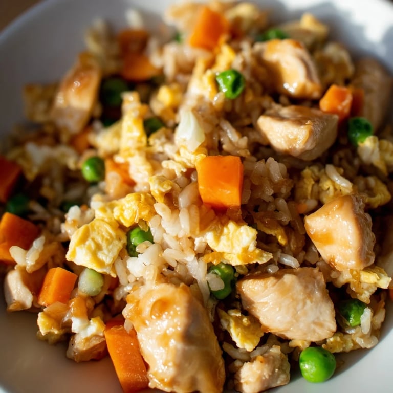 Save to Pinterest There's something about the sizzle of a wok that makes everything feel possible. I discovered chicken fried rice during a Tuesday night when my fridge was nearly empty and my friends were coming over in twenty minutes. I had leftover rice, some chicken, and a determined mood. What emerged from that wok was so good that it's now my go-to move whenever I need to turn simple ingredients into something that tastes like I actually planned ahead.