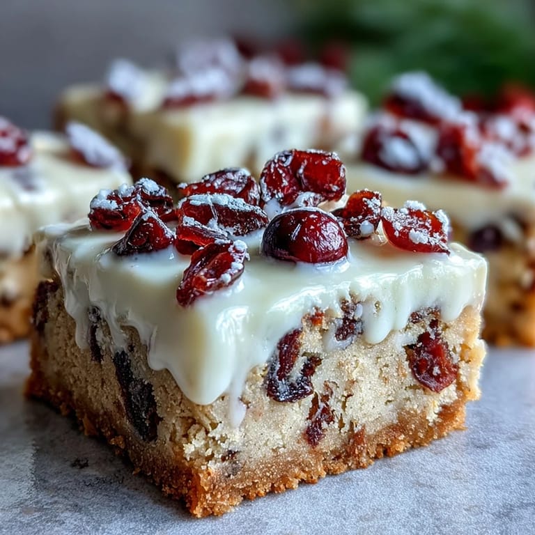 Save to Pinterest The first time I brought these to a family gathering, my aunt asked for the recipe before she even finished her first bar. Watching people reach for seconds and seeing the cranberries glisten under the white chocolate drizzle made all the trial runs worth it. These bars have a way of making any table feel a little more festive, even on an ordinary Tuesday.