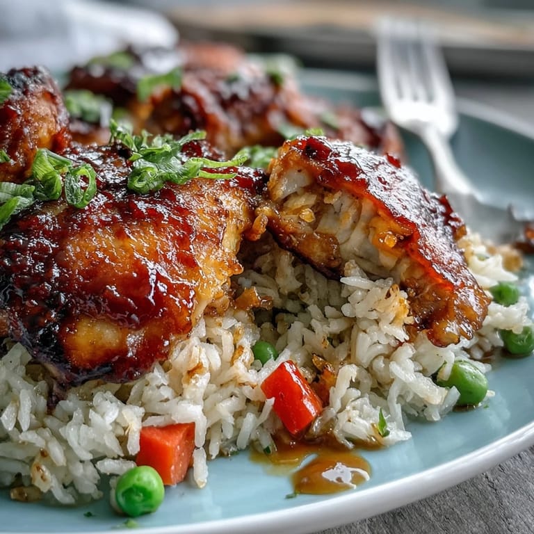 Cooking everything together means the rice absorbs the flavors of the chicken, sauce, and broth simultaneously instead of tasting like separate components on a plate. The chicken releases moisture that mingles with the honey-BBQ glaze and creates a slightly sticky bottom layer of rice—the kind of crispy, caramelized bits that make people reach for just one more forkful. It's genuinely more flavorful than cooking these elements separately, and you're not even trying harder.