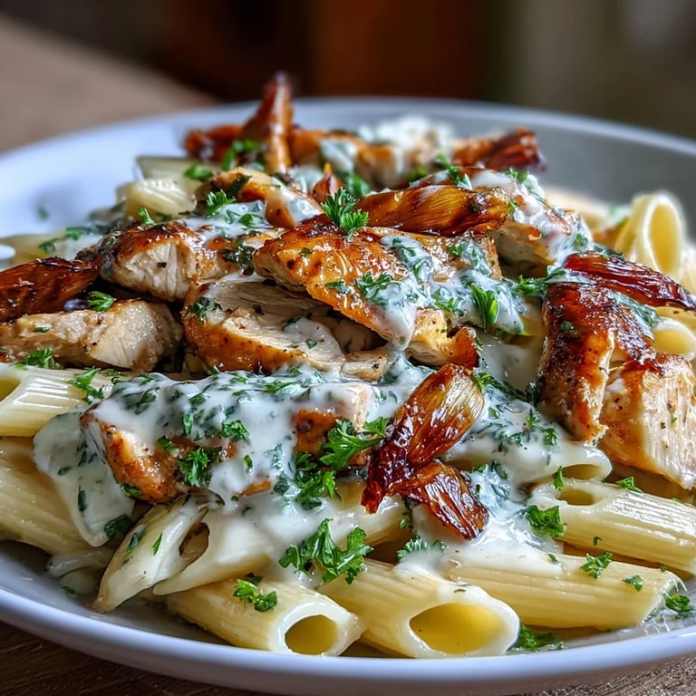 Save to Pinterest There was this Sunday afternoon when I opened the oven to check on a whole head of garlic I'd wrapped in foil, and the smell that poured out made my husband walk in from the next room asking what I was making. I wasn't even sure yet. I just knew I had chicken, cream, and pasta, and that roasted garlic was going to be the star. What came together that day has been on repeat ever since.