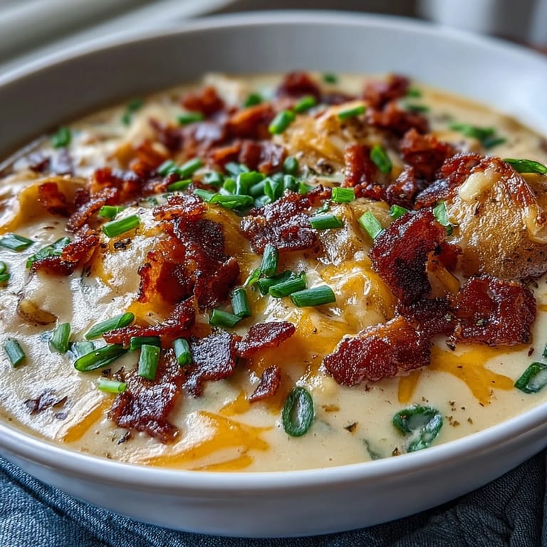 Save to Pinterest There is something quietly magical about a bowl of potato soup on a cool March evening. This St. Patrick's Day Loaded Baked Potato Soup takes everything you love about a classic loaded baked potato—the creamy interior, the sharp cheddar, the crispy bacon, the fresh bite of green onion—and transforms it into a velvety, comforting soup that feels indulgent yet is genuinely lightened up. Made with Yukon Gold potatoes, low-fat milk, Greek yogurt, and reduced-fat cheddar, it delivers rich, satisfying flavor without the heaviness. Whether you are celebrating St. Patrick's Day with family or simply chasing away the chill of an early spring night, this soup belongs on your table.