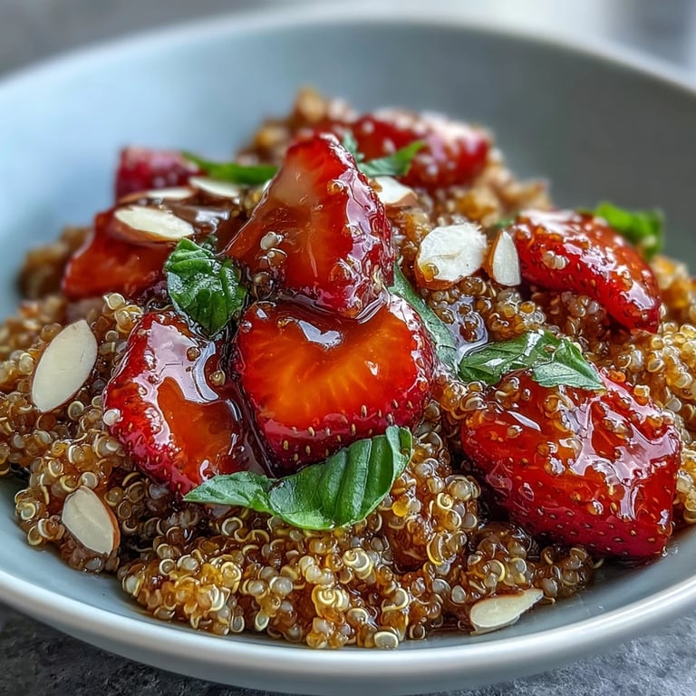 Save to Pinterest Last spring, I was standing in my kitchen at dawn, listening to the birds outside my window, when I realized I'd been eating the same oatmeal for three months straight. That morning, I spotted a bunch of basil I'd forgotten about on the counter and a pint of strawberries turning soft, and something just clicked—what if breakfast could taste like a garden? This strawberry basil quinoa bowl became my answer, a bowl that feels fancy enough for Sunday brunch but comes together faster than you'd think on a Tuesday morning.